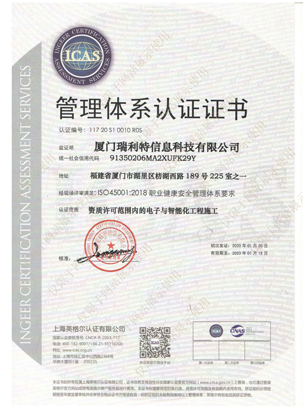 ISO45001:2018職業(yè)健康安全管理體系認(rèn)證證書